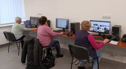 Podczas ostatnich zajęć (24.02.) z cyklu E-Senior seniorzy mieli okazję spróbować swoich sił w świecie grafiki komputerowej. Spotkanie poświęcone było pracy w serwisie Canva, który umożliwia tworzenie estetycznych projektów w prosty i intuicyjny sposób.