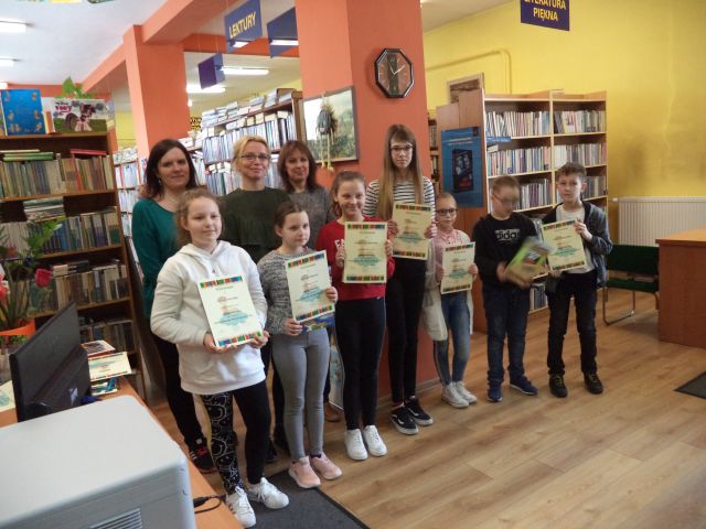 29.03.2019 laureaci konkursu plastycznego „Biblioteka moich marzeń” odebrali pamiątkowe dyplomy i nagrody książkowe. Wpłynęło 27 prac z trzech szkół. Wszyscy uczestnicy wykazali się dużą kreatywnością i inwencją twórczą. Jurorzy (Adrianna Olczak i Karolina Waleryszak) stanęli przed trudnym zadaniem. Udało im się wybrać 16 osób, które postanowiliśmy wyróżnić.