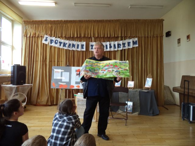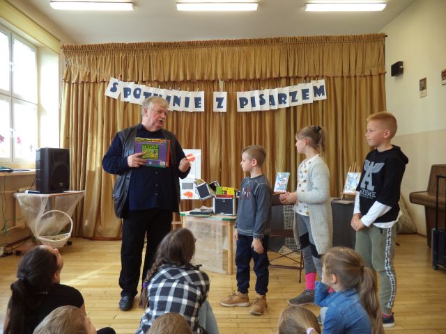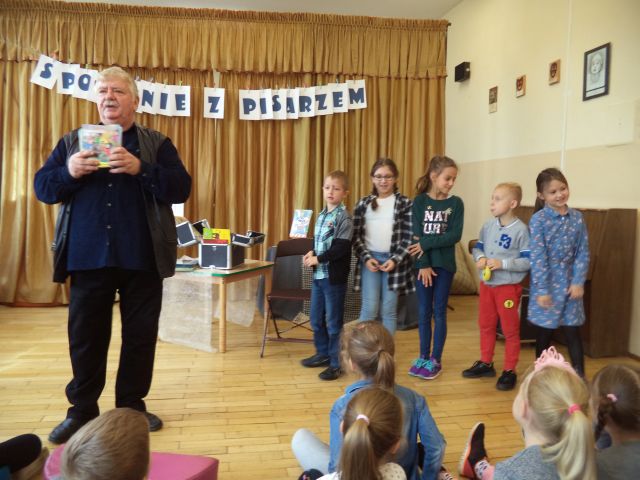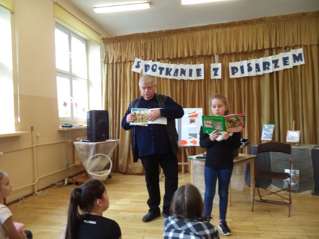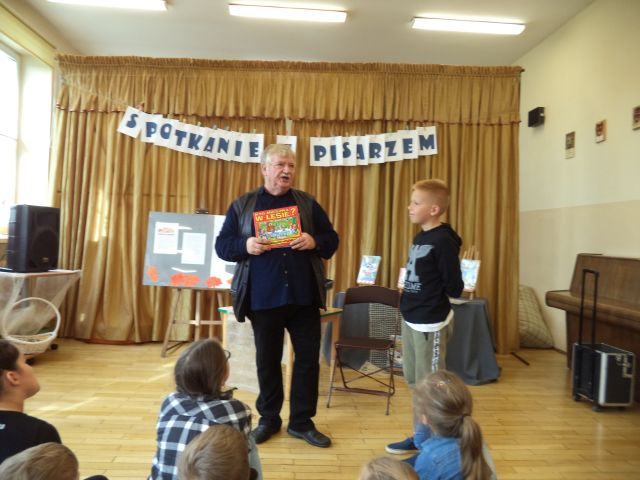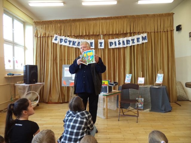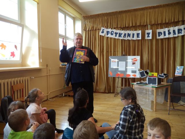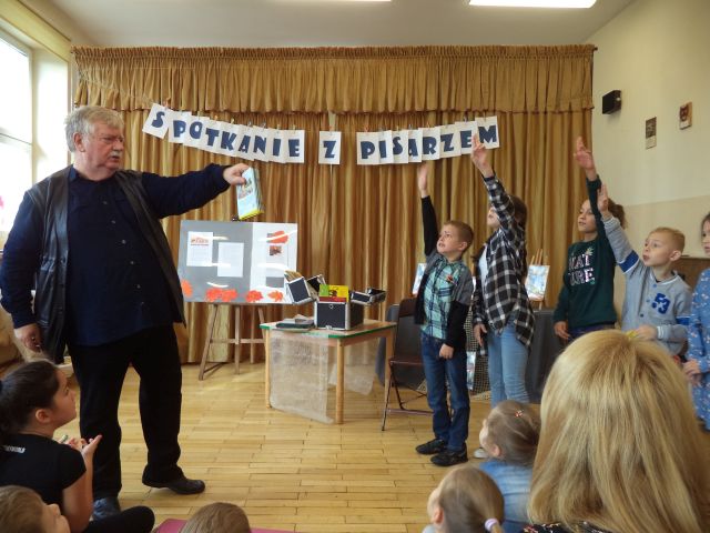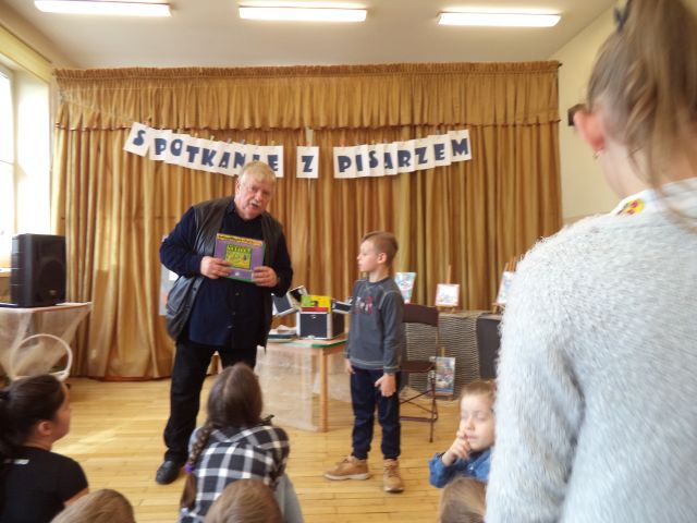 Z Wiesławem Drabikiem, 4 października miały okazję spotkać się dzieci z najmłodszych klas Szkoły Podstawowej nr 1 w Słupcy. Podczas spotkania autor z humorem opowiadał o swojej twórczości i warsztacie pisarskim, czytał zabawne anegdoty, pokazywał jak powstaje książka. Zadawał zagadki i pytania dotyczące znajomości bajek, a każdą prawidłową odpowiedź nagradzał niespodzianką.
