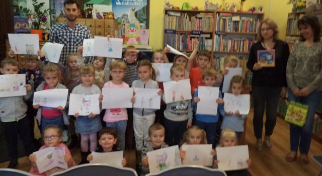 Wprowadzanie dzieci w świat literatury rozpoczyna się od wczesnych lat. Wiek przedszkolny jest doskonałym czasem na rozbudzanie zainteresowań czytelniczych i promowanie czytelnictwa wśród dzieci. 28 października tematem spotkania z dziećmi było zapoznanie z księgozbiorem biblioteki. Pokazaliśmy jak różne mogą być książki: od świecących, poruszających się, po rozkładane, trójwymiarowe i dźwiękowe. Przedszkolaki dowiedziały się co należy zrobić, aby stać się czytelnikiem biblioteki oraz jak należy się w niej zachowywać. Zobaczyły jak wygląda karta czytelnika oraz poznały zasady wypożyczania książek. Dzieci dowiedziały się także, jak należy dbać o książki, nie tylko te z biblioteki. Nie zabrakło głośnego czytania. Na zakończenie Wiewiórki wykonały ilustracje do przeczytanej książki „Kicia Kocia w bibliotece”.