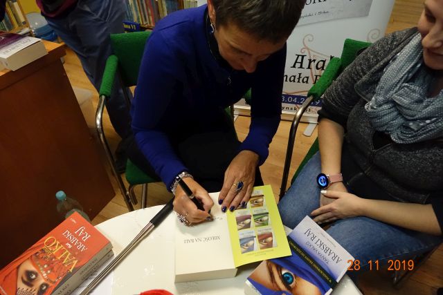 Podczas spotkania autorka zdradziła plany związane z kontynuacją sagi arabskiej. Ukaże się jeszcze tom zatytułowany „Arabski syn”, a następnie „Arabska wendeta”. Już myśli o nowym projekcie pisarskim, tym razem związanym z kulturą judaizmu. Wszystkie książki autorki, które się ukażą zostaną zakupione przez bibliotekę.
