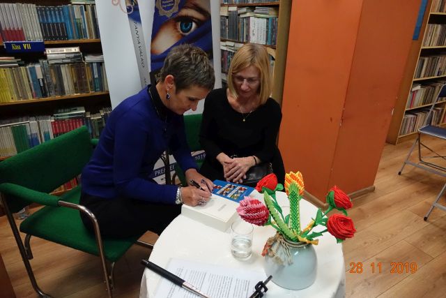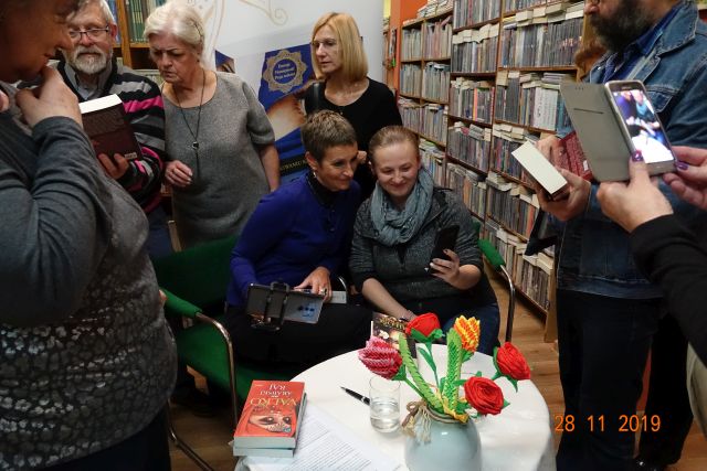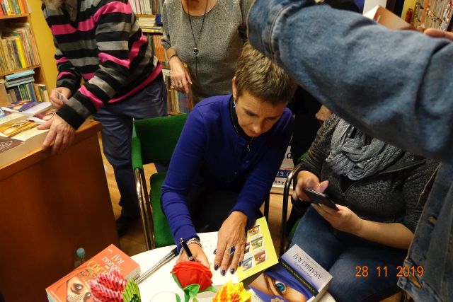Uczestnicy spotkania w bibliotece mieli możliwość zakupienia książek Tanyi Valko, otrzymania autografu ze specjalną, imienną dedykacją oraz zrobienia zdjęcia z autorką.