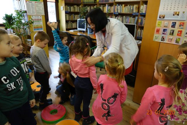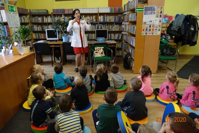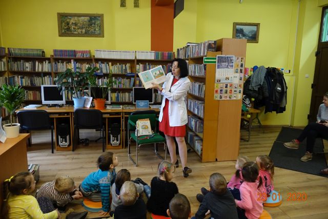 Dziękujemy pani doktor Orchowskiej za przyjęcie zaproszenia, a dzieciom za aktywny udział w spotkaniu. Cieszymy się, że przedszkolaki miały okazję poznać naszą bibliotekę i liczymy na to, że spotkanie przyczyni się do rozwijania zainteresowań czytelniczych maluchów, a książka na stałe zagości w ich domach.