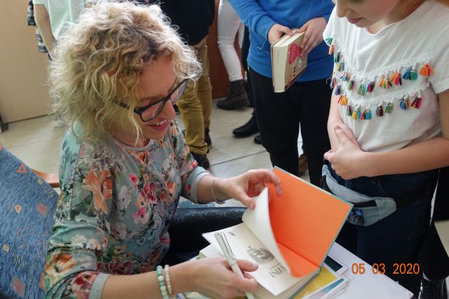 Autorka powieści dla młodzieży, dorosłych i dzieci, a także wierszy i opowiadań, 5 marca spotkała się z uczniami klas V i VI w Szkole Podstawowej nr 3 w Słupcy. Joanna Jagiełło przyjechała na zaproszenie Miejskiej i Powiatowej Biblioteki Publicznej w Słupcy. Temat spotkania Wokół spełniania marzeń był okazją do rozmowy nie tylko o literaturze. Padło wiele ciekawych pytań dotyczących książek autorki oraz samego procesu pisania, na które pisarka bardzo chętnie odpowiadała. Zdradziła, jak zaczęła się jej kariera pisarska, opowiedziała o swoich książkach i zdradziła zarys fabuły swojej kolejnej publikacji. Jest, jak sama o sobie mówi, niepoprawną optymistką i tą pozytywną energią zaraża swoich czytelników. Pani Jagiełło to miła i pogodna osoba, z niezwykłą łatwością nawiązała kontakt z młodzieżą, co z pewnością wpłynie na pozytywne wspomnienia i czytanie jej książek. Pisarka wpisała się do kroniki biblioteki, a wszyscy uczestnicy spotkania otrzymali pamiątkowe autografy. Po spotkaniu z młodzieżą, autorka poświęciła również czas pierwszoklasistom, którzy przyszli z samodzielnie przygotowanym prezentem. Wykonały ilustracje do książki Czacha się buntuje.