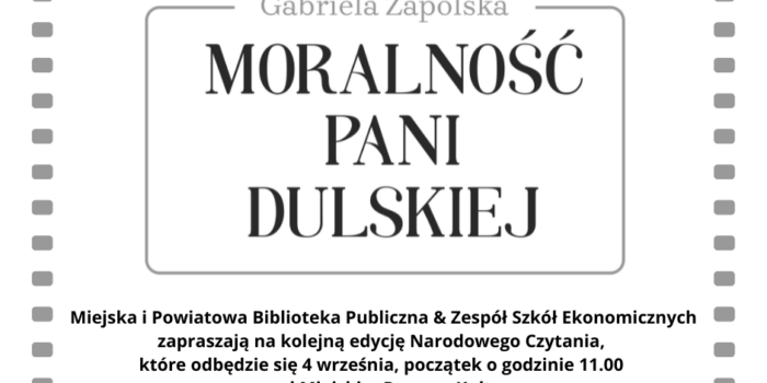 – Czytanie fragmentów “Moralności Pani Dulskiej”. W roli lektorów wystąpią przedstawiciele Władz Samorządowych, Urzędu Miasta, Starostwa Powiatowego, Szkół, Przedszkoli, Instytucji Kultury, Radni, Czytelnicy, Młodzież.