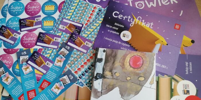 Za każdą wizytę w bibliotece, zakończoną wypożyczeniem minimum jednej książki z księgozbioru dziecięcego, Mały Czytelnik otrzyma naklejkę, a po zebraniu dziesięciu zostanie uhonorowany imiennym dyplomem potwierdzającym jego czytelnicze zainteresowania.
