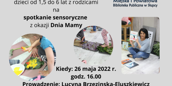 Miejska i Powiatowa Biblioteka Publiczna w Słupcy zaprasza na sensoryczne spotkania z najmłodszymi (i nieco starszymi) pociechami i najlepszymi książkami dla dzieci. Pierwsze już 26 MAJA (DZIEŃ MAMY). OBOWIĄZUJĄ ZAPISY!