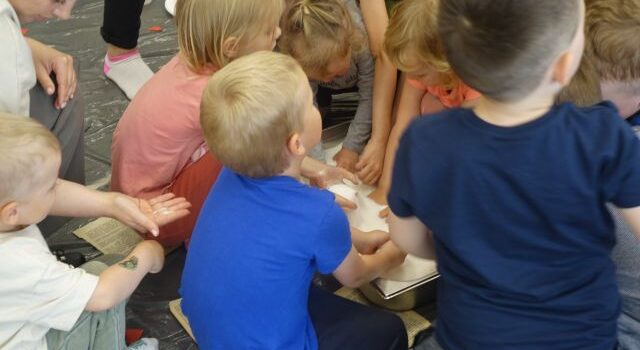 To była fantastyczna przygoda z czytaniem z wykorzystaniem wszystkich zmysłów. Dzieci miały możliwość dotknąć, zatańczyć, posłuchać, a nawet posmakować. Zajęcia były kolorowe, wesołe, odkrywcze, twórcze, a nawet… brudzące.