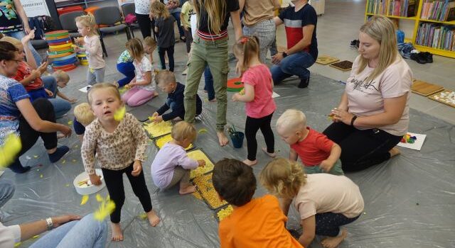 Rodzice i babcie wraz z dziećmi przekonali się, że integracja sensoryczna to nic innego, jak świetna wspólna zabawa. W czasie zajęć udało się stworzyć w bibliotece niesamowitą przestrzeń, w której dzieci mogły się jednocześnie dobrze bawić oraz rozwijać swoją kreatywność i twórcze myślenie.