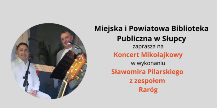 1 grudnia o godz. 17.00 zapraszamy na wyjątkowy Koncert Mikołajkowy w wykonaniu Sławomira Pilarskiego z zespołem Raróg.