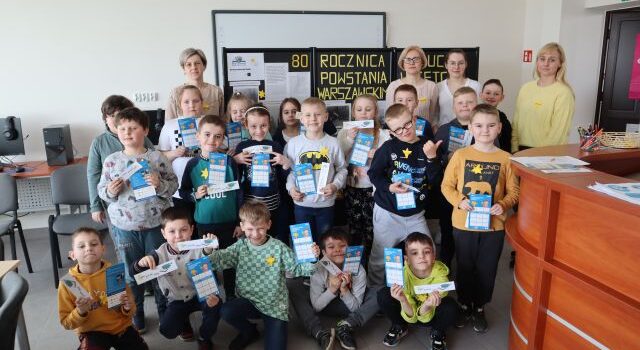 W 2023 r. przypada 80 rocznica wybuchu powstania w getcie warszawskim. 19 kwietnia rozdawaliśmy w mieście i instytucjach papierowe żonkile, a dzień później zaprosiliśmy do biblioteki uczniów z klasy 1a ze Szkoły Podstawowej nr 3 im. Adama Mickiewicza w Słupcy.