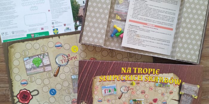 Młodzież, zainspirowana lokalną historią i dziedzictwem, pod naszym bibliotekarek i szkoleniowców Szymona Dąbrowskiego i Dariusza Pawłowskiego okiem, najpierw wzięła udział w zajęciach poświęconych historii swojego miasta oraz technikom tworzenia gier planszowych, a następnie tworzyła grę planszową pod tytułem NA TROPIE SŁUPECKICH SKARBÓW.