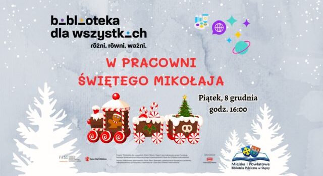Kochane Dzieci i Rodzice! Zbliżają się Święta, a wraz z nimi magiczny czas Mikołajek! W tym wyjątkowym okresie serdecznie zapraszamy Was do udziału w Pracowni Świętego Mikołaja – mikołajkowych warsztatach kreatywnych w naszej bibliotece 8 grudnia o godz. 16.00!