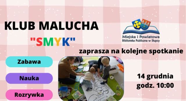 Drodzy Rodzice i Maluszki Smyki, serdecznie zapraszamy Was na kolejne spotkanie Klubu Malucha Smyk, które odbędzie się w dniu 14 grudnia o godzinie 10:00 w naszej bibliotece!