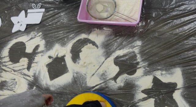 Na koniec spotkania pofantazjowaliśmy razem z rodzicami, tworząc śnieżną krainę z mąki i kartoników różnych kształtów. Dziękujemy wszystkim rodzicom i maluchom za udział w tej wspaniałej zabawie! To dla nas kolejne fantastyczne doświadczenie i cudownie spędzony czas.