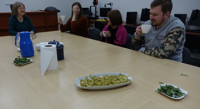 Pani Julia podzieliła się nie tylko przepisem na zdrowy napar z podagrycznika, ale również tajnikami kiszenia skrzydlaków, podkreślając ich wartość odżywczą i wyjątkowy smak. Wartość edukacyjna spotkania była ogromna, a uczestnicy mieli okazję zadawać pytania i dzielić się swoimi doświadczeniami.