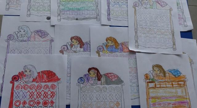 Na zakończenie tego wyjątkowego dnia dzieci miały okazję wykazać się swoją kreatywnością, tworząc piękne prace plastyczne inspirowane baśnią H. Ch. Andersena „Księżniczka na ziarnku grochu”.