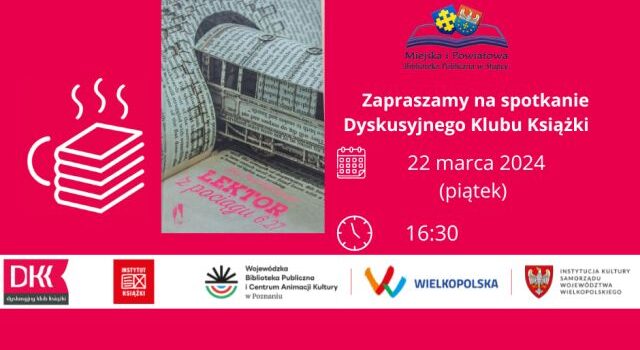 W magicznej krainie literatury kolejne przygody czekają na naszych miłośników książek! Miejska i Powiatowa Biblioteka Publiczna w Słupcy serdecznie zaprasza na kolejne spotkanie Dyskusyjnego Klubu Książki, które odbędzie się w nadchodzący piątek, 22 marca, o godzinie 16:30.