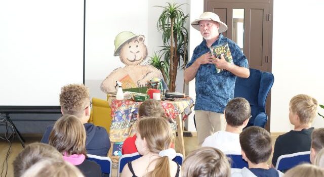 Pan Łukasz z ogromną pasją opowiedział o swoich książkach. Pokazał nam, jak wiele ciekawych historii kryje się wokół nas i jak można je ożywić, otrząsając z kurzu minionych lat. Dzięki jego opowieściom uczestnicy spotkania przenieśli się wraz z niedźwiedziem Wojtkiem do czasów II wojny światowej, przemierzając szlak bojowy Armii generała Andersa, oraz znaleźli się na kontynencie afrykańskim z bohaterem Kazikiem.