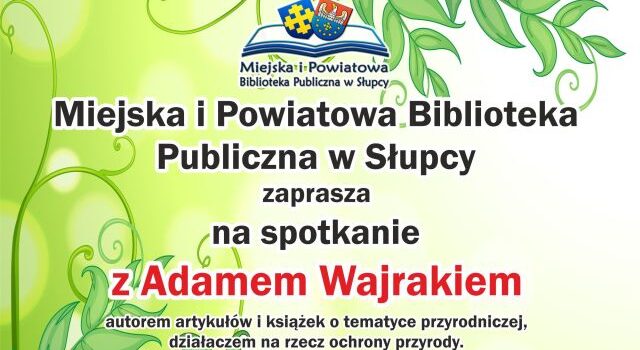 Miejska i Powiatowa Biblioteka Publiczna w Słupcy serdecznie zaprasza wszystkich miłośników przyrody i literatury na wyjątkowe spotkanie z Adamem Wajrakiem, jednym z najbardziej znanych polskich przyrodników i dziennikarzy. Wydarzenie odbędzie się 15 lipca o godz. 17.00 w naszej bibliotece.