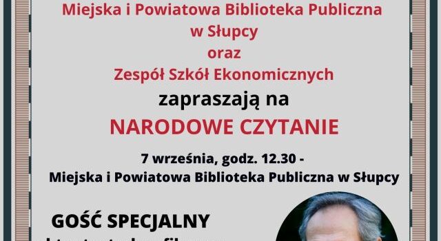 Miejska i Powiatowa Biblioteka Publiczna w Słupcy serdecznie zaprasza wszystkich miłośników literatury na wyjątkowe wydarzenie – 12. edycję Narodowego Czytania, która odbędzie się 7 września o godzinie 12:30.