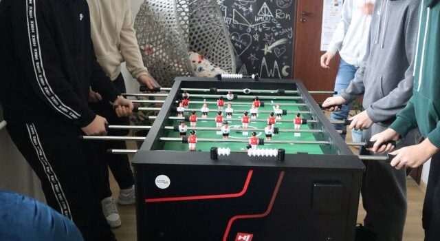 Szczególnym zainteresowaniem cieszyła się nasza przestrzeń młodzieżowa, gdzie uczniowie mogli zrelaksować się przy rozgrywce w piłkarzyki.