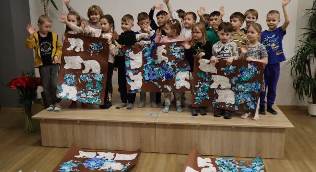 Na zakończenie spotkania każdy uczestnik wykonał pracę plastyczną, na której nie zabrakło śniegu i lodu. Dzieci zadbały o to, by ich misie polarne mogły bezpiecznie żyć w swoim naturalnym środowisku.