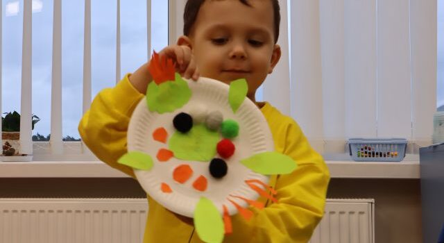 Po części literackiej nadszedł czas na kreatywną zabawę! Małe rączki uczestników zamieniły się w… dinozaury! Stworzyliśmy wyjątkowe prehistoryczne stworzenia, odbijając dłonie na kartkach i dodając im kolorowe detale. Ale na tym nie poprzestaliśmy – kolejnym zadaniem było wykonanie dinozaurów z papierowych talerzyków. Efekt? Każdy dinozaur był inny, wyjątkowy i pełen dziecięcej wyobraźni!