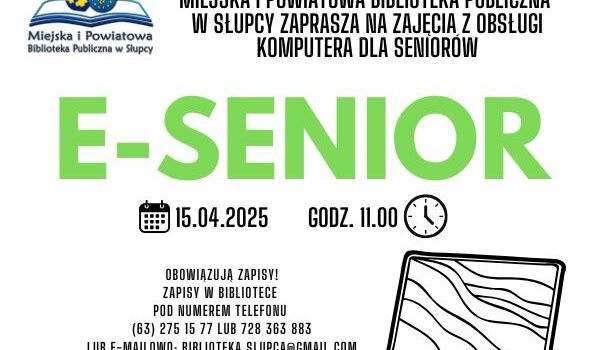 Miejska i Powiatowa Biblioteka Publiczna w Słupcy serdecznie zaprasza seniorów na kolejne spotkanie w ramach cyklu E-Senior, które odbędzie się we wtorek, 15 kwietnia o godz. 11:00.