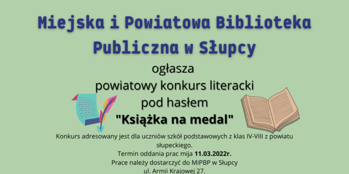 Rok 2022 ogłoszony został rokiem Marii Konopnickiej. Miejska i Powiatowa Biblioteka Publiczna w Słupcy ogłasza powiatowy konkurs plastyczny pod hasłem „Jestem autorem i ilustratorem książki”.